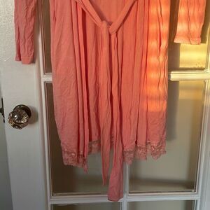 Molliya peach pink long sleeve soft lace ends women’s pj sleep robe size small