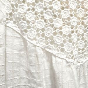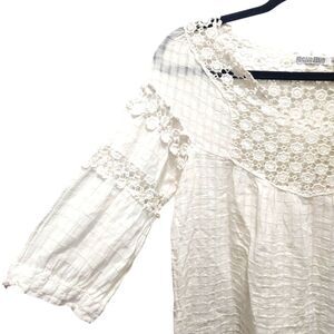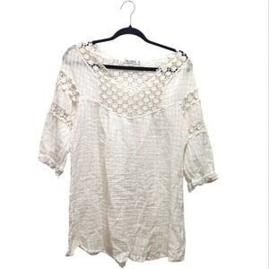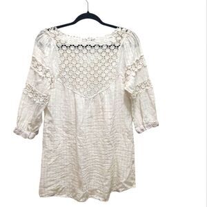 Mollo Rello Boho Peasant Crochet Lace White Ivory V-Neck Tunic Popover Size M