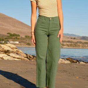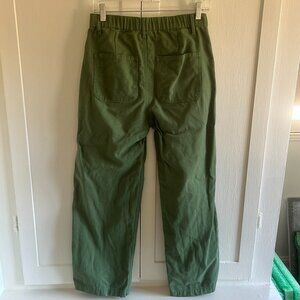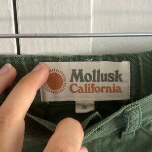 Used Mollusk California "Painter Pants" in "Bud Green" 100% cotton. Features a high-waisted silhouette with elastic in the back for comfort, a snug bottom with room for your curves, and full straight legs that are slightly cropped. Gently used- no rips or stains. Sz S.