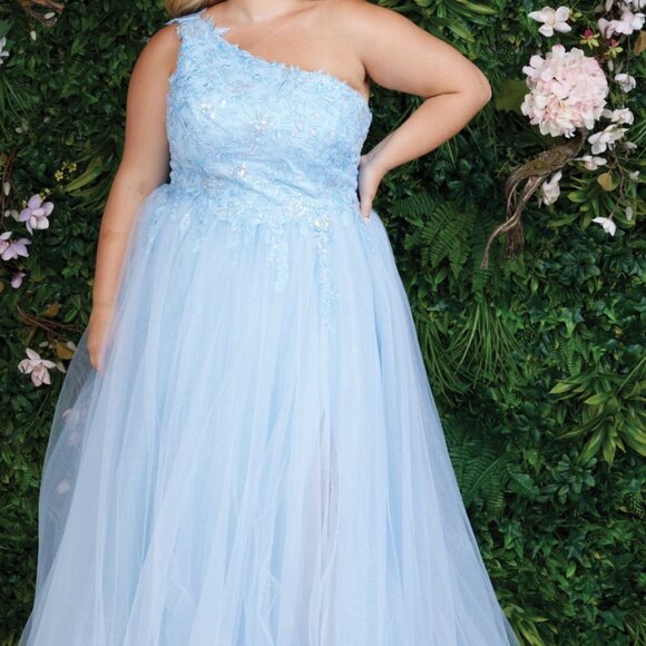 Molly is a fabulous dress with a jaw-dropping one shoulder design and a stunning corset. A playful slit in the flowing skirt adds a flirty flair to this darling dress. It's the perfect choice for any fancy event, particularly prom!!