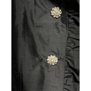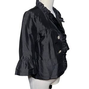Molly B Black Ruffled Cropped Silk Jacket Size 2 Rhinestone Buttons