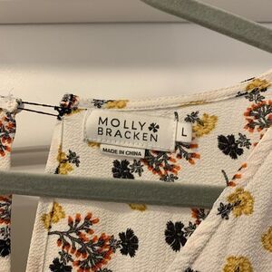 Molly Bracken Anthropologie Ecru Floral Print Romper. Size: Large. Features shoulder cut-outs. Perfect for Summer!