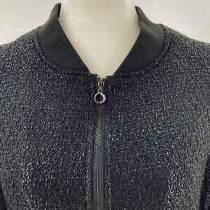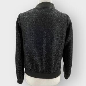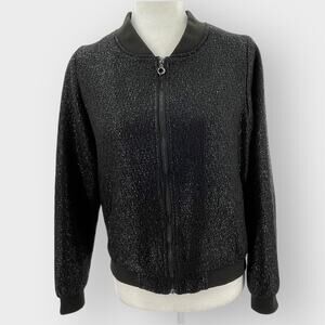 Molly Bracken Black Knit Metallic Textured Lightweight Lined Bomber Jacket M