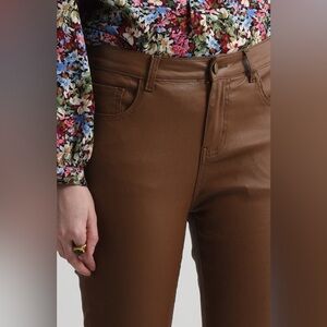 Molly Bracken Cognac Faux Leather Skinny Pants