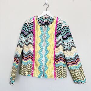 Molly Bracken Colorful Embroidered Zipper Jacket NWT Medium