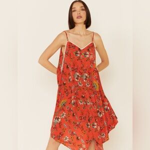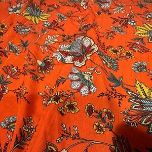Excellent used condition. Vibrant red with shiny vertical lines. Asymmetrical bottom ranges 32-42” in length.