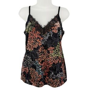 Molly Bracken Floral Lace Trim Cami Top Black Multicolor XS