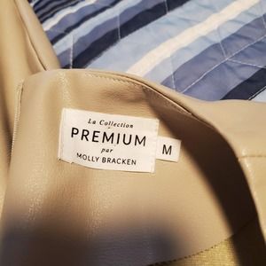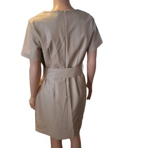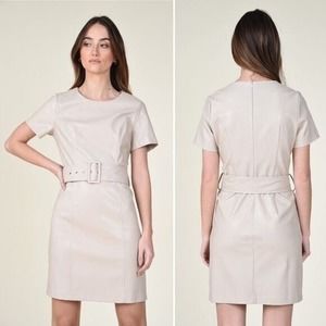 Molly Bracken La Collection Size M Belted Vegan Faux Leather Dress in Beige FLAW