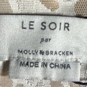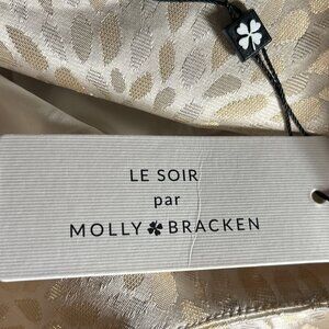 Molly Bracken Le Soir SZ S Cream & Pale Gold metallic shift dress formal mod 60s