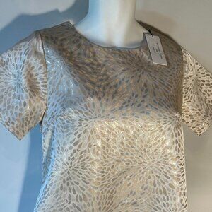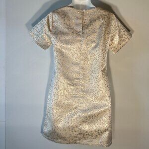 Le Soir/Molly Bracken SZ S Cream & Pale Gold metallic short sleeve shift dress formal mod timeless