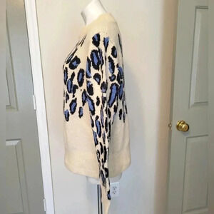 Molly Bracken Lili Sidonin Blue Multicolor Fun Animal Print Leopard Sweater(M/L)