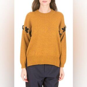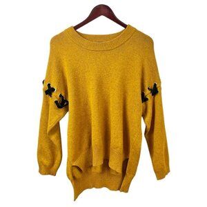 ** Molly Bracken Mustard Crew Neck Sweater w/ Velvet Arm Tie Detailing Size L/XL