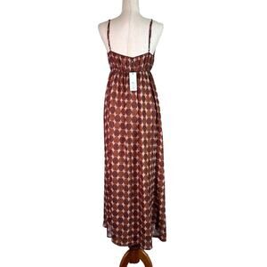 Molly Bracken NWT Maxi Dress Medium Camel Inaya Printed Mask Design Brown Summer