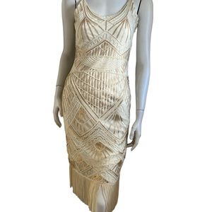 NWT Molly Bracken Sequins Cream Colored Fringe Spaghetti Straps Dress SZ Small