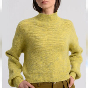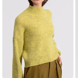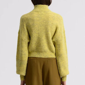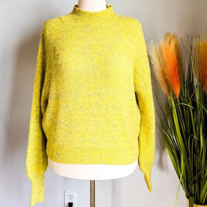 Molly Bracken, NWT, Lime Yellow Mock Neck Puff Sleeve Marbled Sweater, Size Large