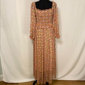Molly Bracken Prairecore Floral Multicolor Poofy Sheer Sleeve Medium Maxi Gown Dress