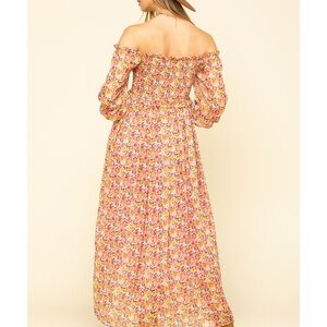 Molly Bracken Prairecore Floral Multicolor Poofy Sheer Sleeve Medium Maxi Dress