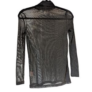 Molly Bracken Sheer Metallic Silver Black Mock Neck Top S Y2K Glam Party