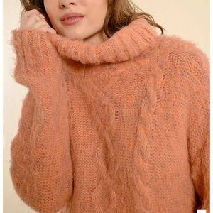 Brighten your wardrobe with this vibrant orange cowl neck sweater from Molly Bracken. Soft and stylish for any occasion.