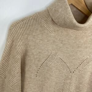 Molly Bracken Women Tunic Sweater XL Cream Tan Cable Knit Turtleneck Minimalist