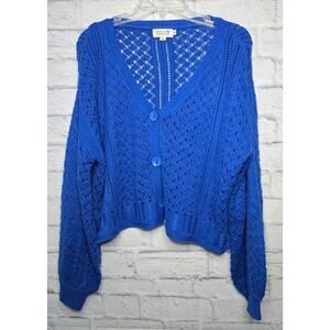 Molly Bracken blue button cropped knit v-neck cardigan medium.