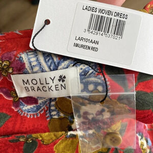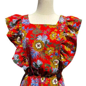 Molly Bracken red floral midi dress with ruffle sleeve size small