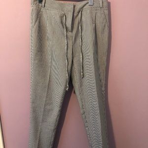 Blue and white pinstriped ankle pants from Molly Brancken. Size small, brand new with tags. Never been worn.