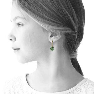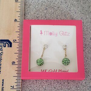 Molly Glitz 14k Gold Plated Lime White Crystal Ball Dangle Earrings