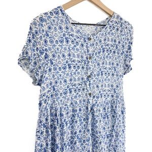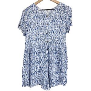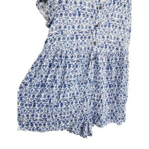 Molly Green Floral Flowy Button Down Romper, Blue - Size S