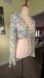 Measures 18 inches pit to pit and 13 inches shoulder to hem Vibrant fabric with a multicolor pattern. Features shades of green, blue, and orange.  Has lining in bodice Frilled Neck
