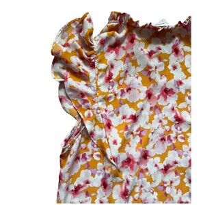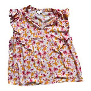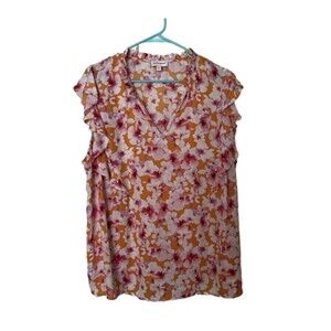 Molly & Isadora Blouse Women’s 2X Plus White Pink Floral Short Sleeve Flowy Top
