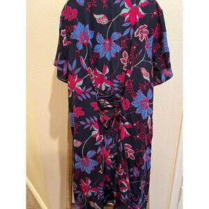 Navy, mint green and fuschia patterned dress in 20w 26” pit to pit 42”L