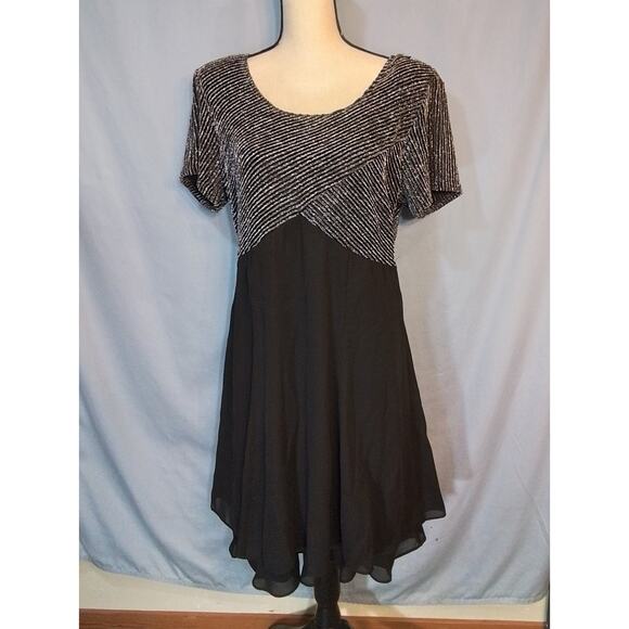 Molly Malloy. Black cocktail /Party dress size 14. shoulder to hem 36 in, P to P 21in, waist 36in.