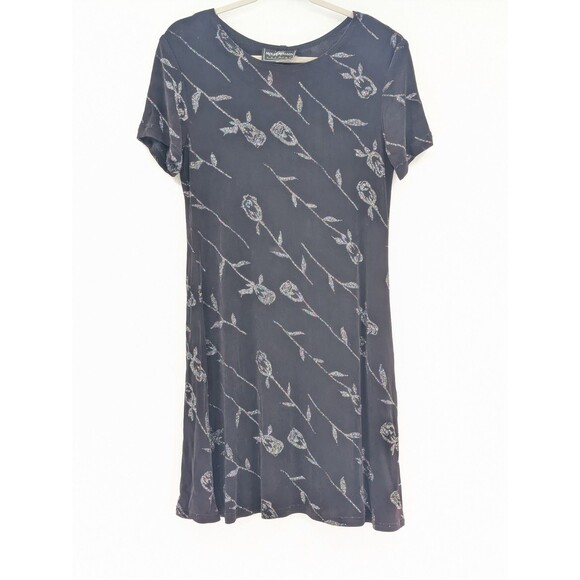 Molly Malloy Evening Vintage 90s Black Rhinestone Roses Midi Dress Size Large