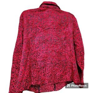 Introducing a stylish and versatile jacket from Molly & Max, perfect for travel, casual outings and business meetings. This jacket features a collared neckline, full zipper closure, and long sleeves. The lightweight and breathable fabric make it suitable for all seasons, and the pockets provide ample space for your essentials. The multicolor leopard print pattern adds a touch of boldness to any outfit, making it a great addition to your wardrobe. Hand wash only for best care. Pinhole left shoulder.