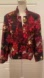 Red black print blazer, Full zip, Long sleeves , Poly Spandex , Notched collar, measures are in the pictures. Pocket still sewn together. New without tags. Beautiful. Watch video for more details. Happy po Fully lined.