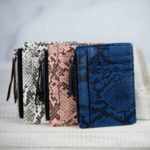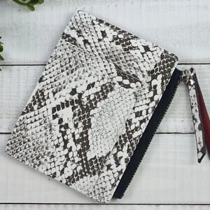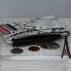 Molly Vegan Leather Snake Print Coin Zipper Tousled Pouch White Black