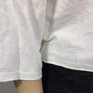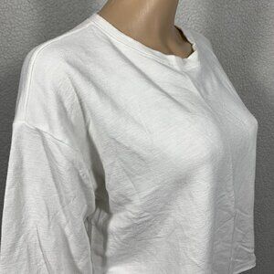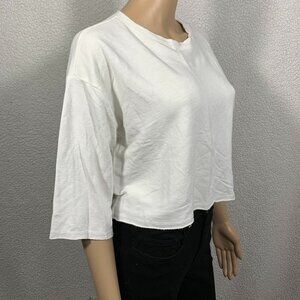 Molly green Women's Crop Top. Size Medium. White 3/4 Sleeve Shirt. Style # D18E282. Raw factory Edges. Pilling. No rips, stains or holes. Smoke free home.