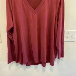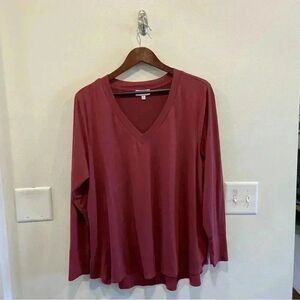 Molly & isadora long sleeve maroon v neck tee shirt top in size 2x