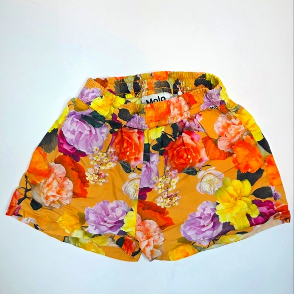 Elevate your style with Molo's high waist floral shorts. Features vibrant orange, purple, and yellow hues. Ideal for sunny outings.