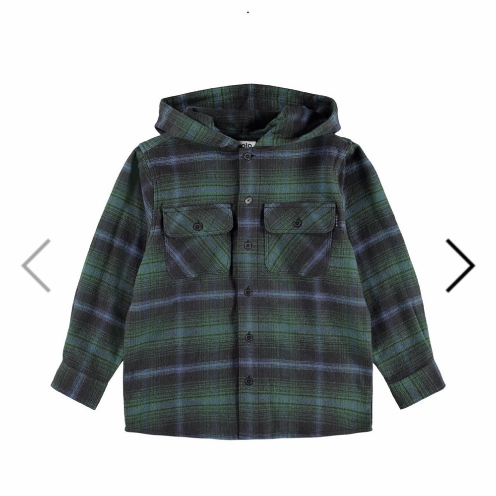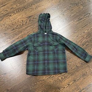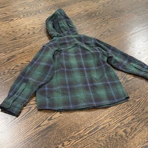 Cozy plaid hoodie with button-up front. Perfect for casual wear.