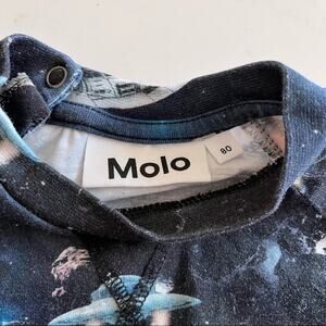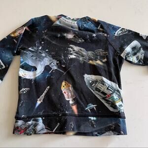 Childrens designer top in excellent condition. Space design and shoulder snap back. The actual top is less faded then it appears in pictures. Size 80/12 months