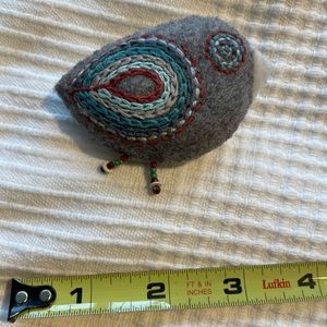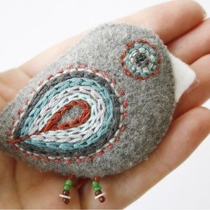 Felt pin. Grey wool bird pin. Embroidered ornament decor - sparrow bird pin