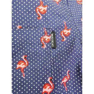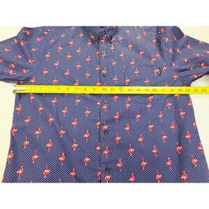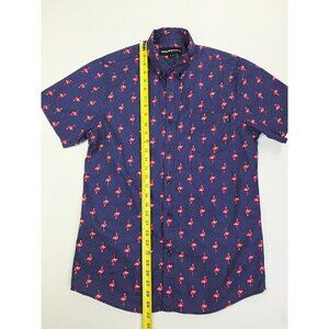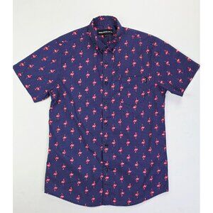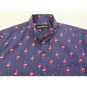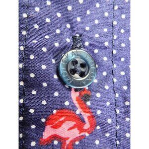 Molokai Medium Men Navy White Polka Dots Flamingo Short Sleeve Button Down Shirt