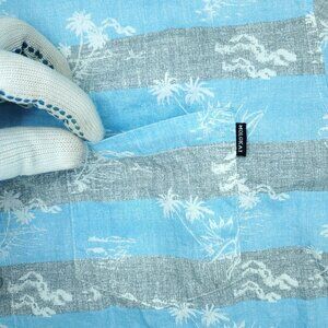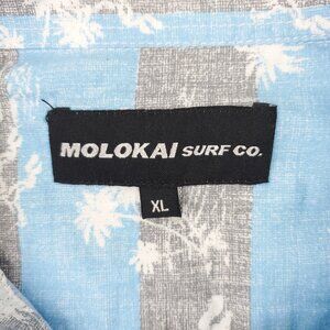 Molokai Surf Co. Button Shirt Mens XL Blue Gray Palm Trees Print Striped