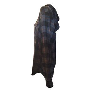 This hooded plaid flannel shirt jacket by Molokai Surf Co. offers a comfortable fit, ideal for layering. Crafted in a durable material, it suits various casual settings.