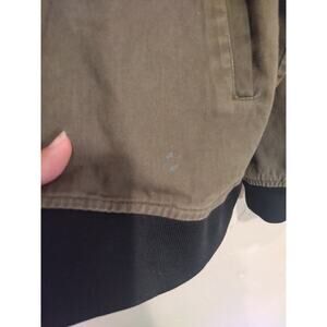 Molokai Surf Co Lightweight Bomber Jacket. Army green in color with contrasting white on cuffs and hems. Small black spot on back, small paint spot on front. Both shown in photos. Size M.