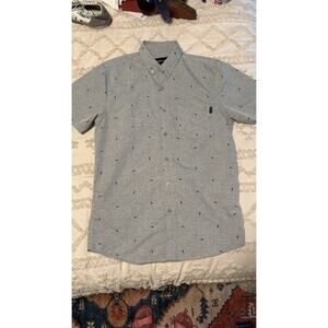 Molokai Surf Co. M Gray with Lightning Bolts Short Sleeve Button-Up Shirt