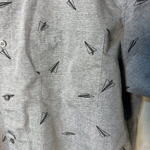 Molokai Surf Co Men's Size XL Gray Paper Airplane Short Sleeve Shirt Button Up.