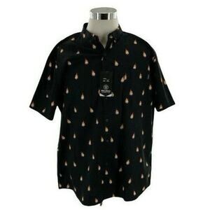 Molokai Surf Co. Shirt Men's Size XL Short Sleeve Fireball Flaming Skull Print Front Pocket Top NEW